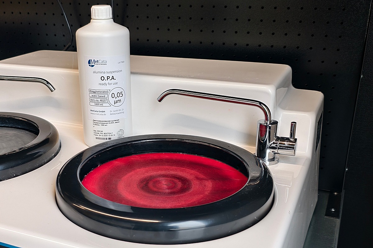Благодаря данным суспензиям достигается высокая плоскостность поверхности металлических образцов, сварных и паяных швов, композитных материалов с покрытиями.