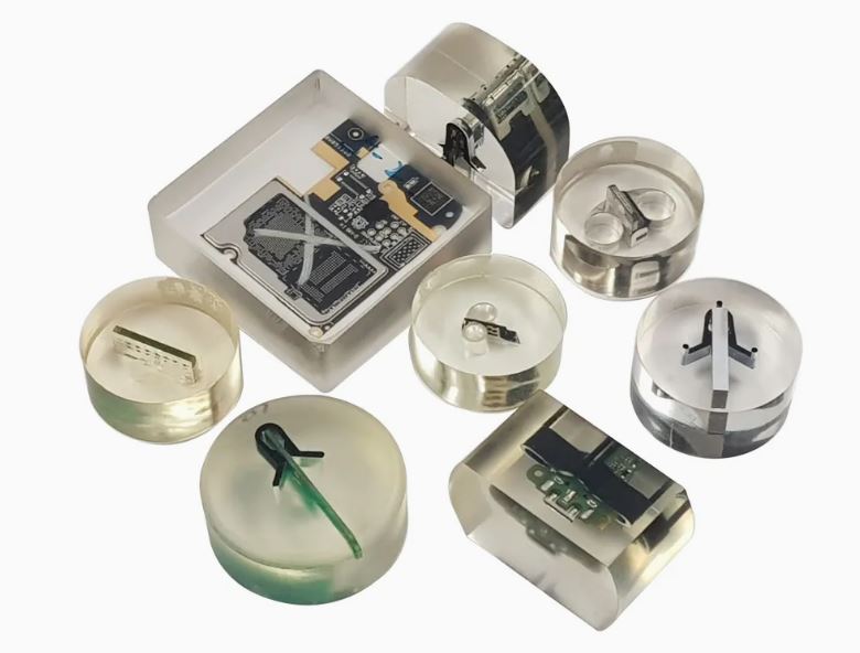 - Обеспечение прозрачности. Смола после затвердевания остаются прозрачными, что позволяет проводить визуальный контроль образца или использовать их в ситуациях, где важна видимость структуры материала.