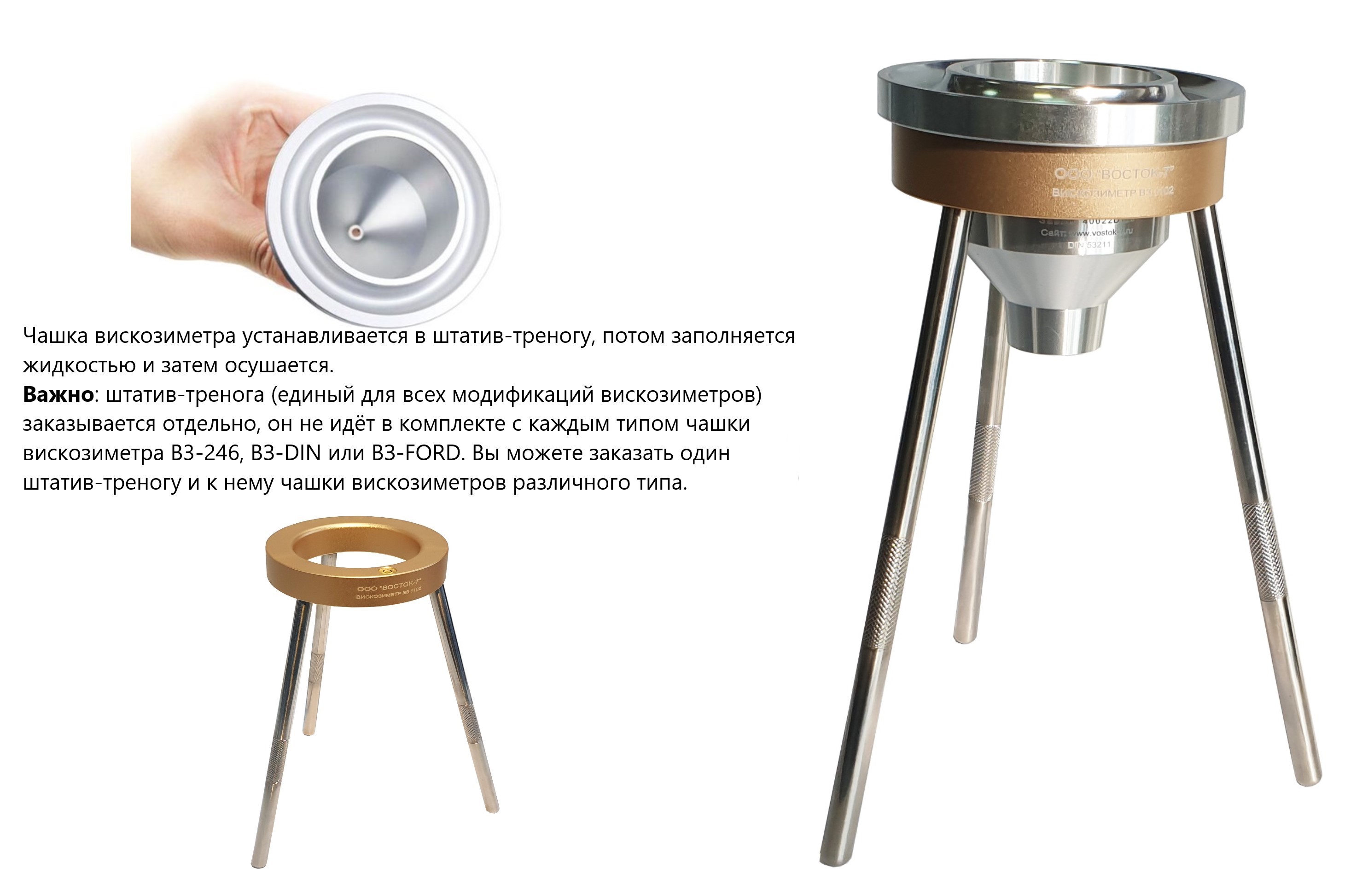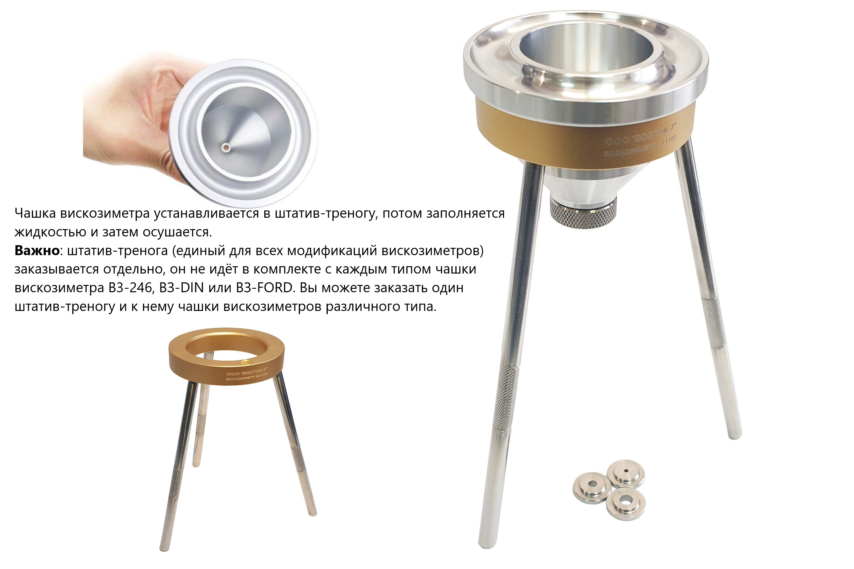 Масса штатива без вискозиметра: 0,4 кг, габаритные размеры (ØxH) 140х190 мм