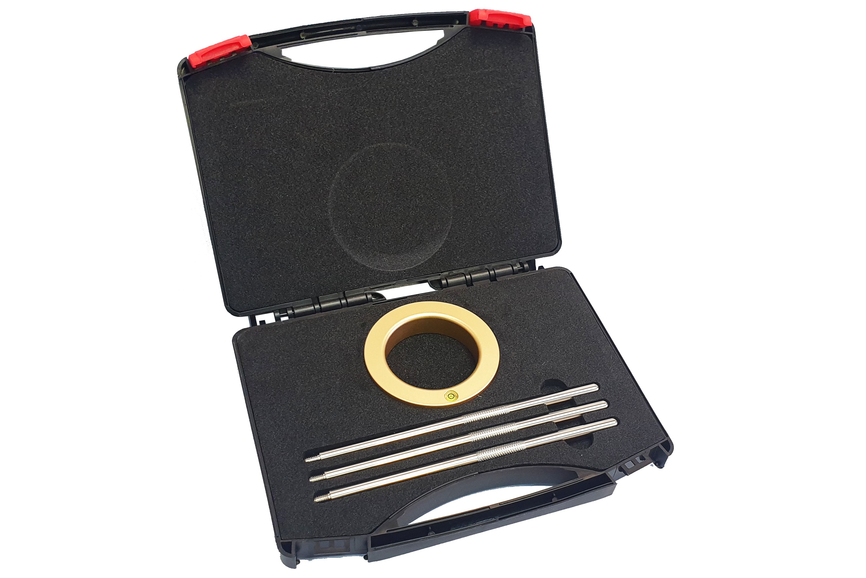 Штатив (кольцо и регулируемые ножки) из анодированного алюминия, противоударный пластиковый кейс для хранения и переноски.