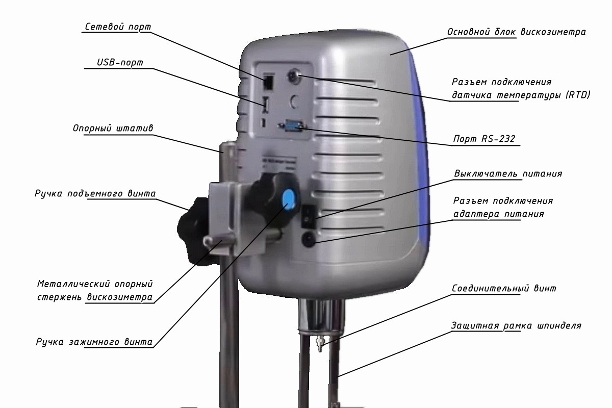 | Отображаемые параметры | вязкость, скорость вращения, крутящий момент, температура образца, тип шпинделя | ||||