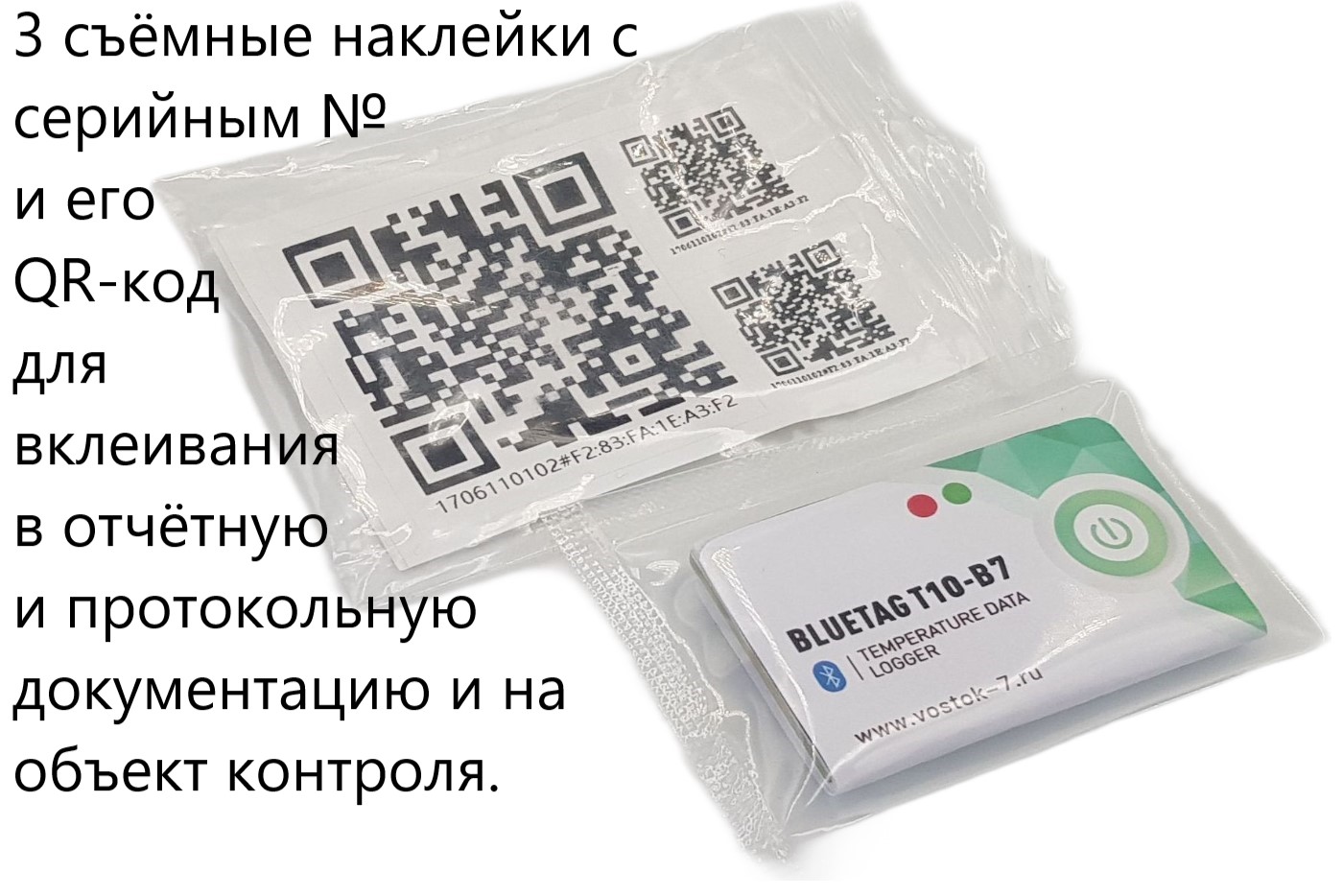 - Сейф-пакет: одноразовый (защита от несанкционированного доступа), прозрачный (удобно считывать индикацию), пыле и водонепроницаемый (класс защиты IP 67), пищевой полиэтилен (безопасен для продуктов питания). Для крепления на вертикальных и других поверхностях используйте двухсторонний скотч ЗМ (клеится к сейф-пакету).