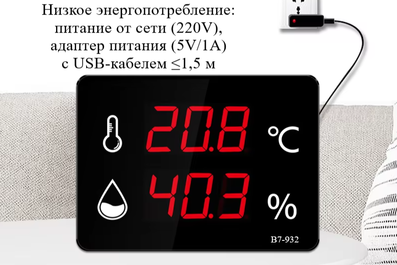 - Низкое энергопотребление: питание от сети (220V) адаптер питания (5V/1A) с USB-кабелем ≤1,5 м.
