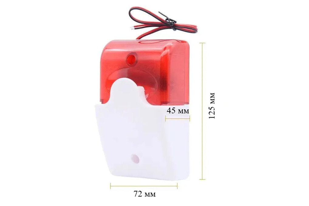 - Модификация F: внутренний (встроенный) датчик для воздушной среды в помещениях при измерении температуры (Т: -15…+80 ⁰С) и показаний относительной влажности (ОВ: 0…100 %), внешняя стробоскопическая светошумовая сирена тревоги (выносного типа, ярко-красный строб 2,5 Гц (вспышка 150 раз/мин), звуковое давление ≤120 дБ) с кабелем ≤1,5 и крепёжным комплектом для монтажа на стену. Погрешность при измерении температуры: ±2 0С