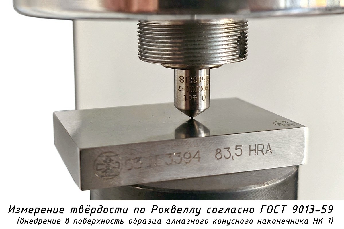 Измерение твёрдости образца металла по шкалам Роквелла - по глубине внедрения алмазного наконечника НК 1