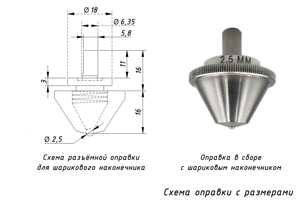 2,5 мм | Шариковый наконечник (D = 2,5 мм) в оправке |
