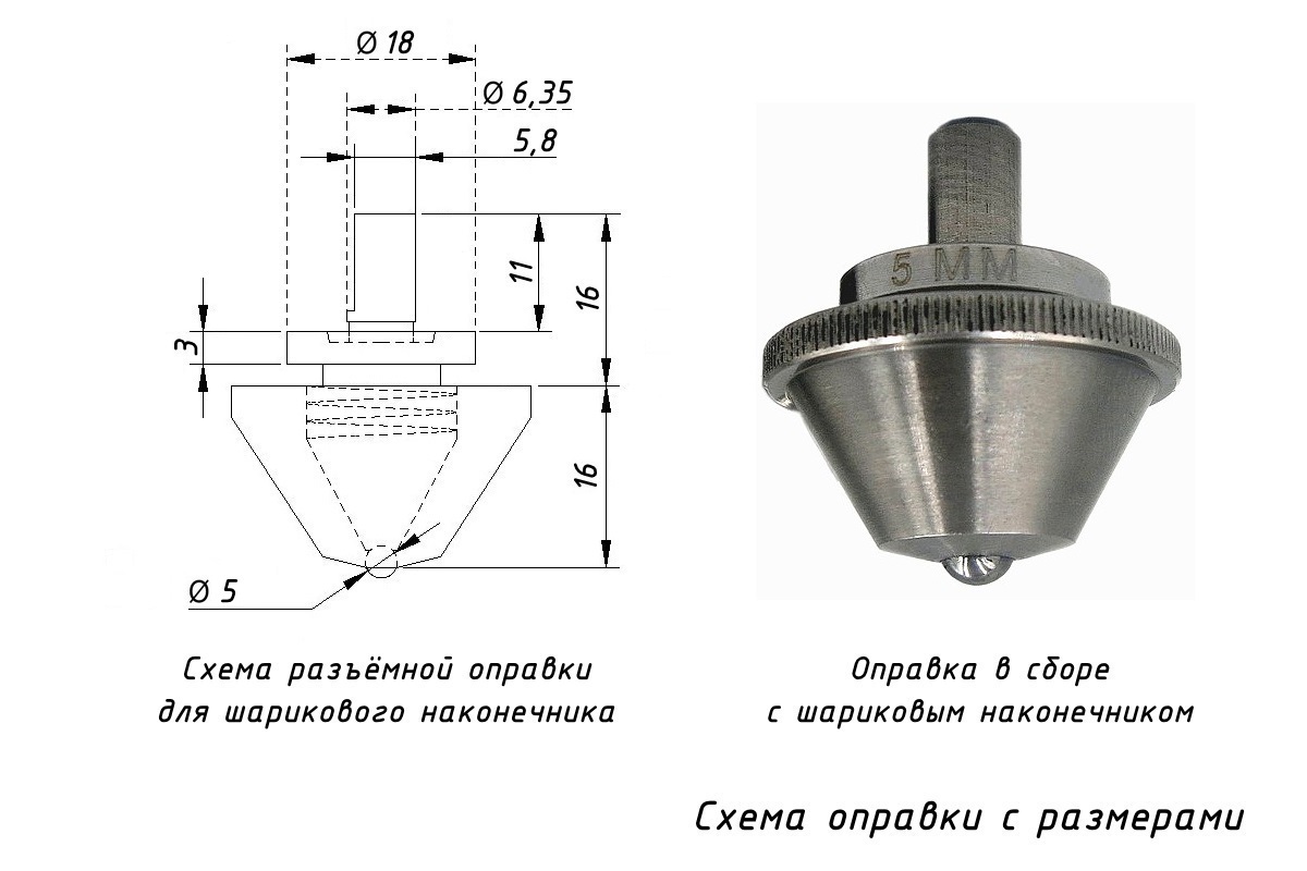 5 мм | Шариковый наконечник (D = 5 мм) в оправке |