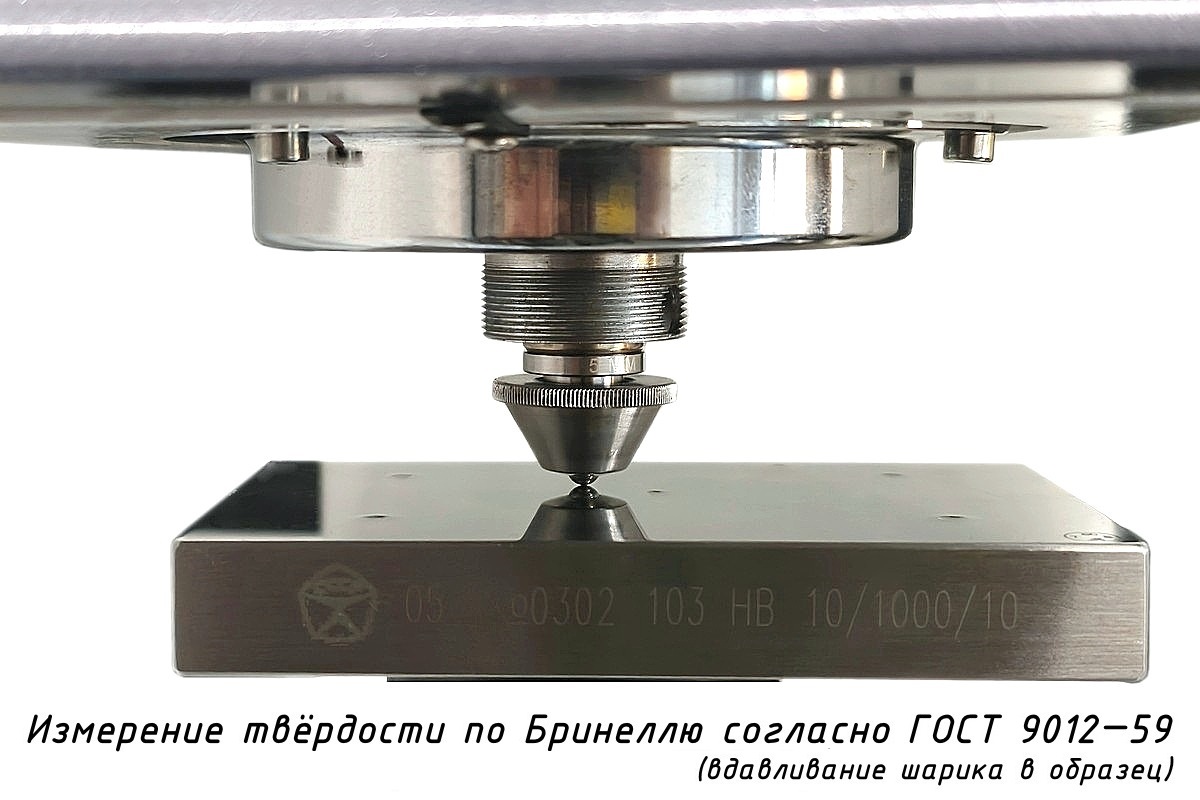 Измерение твёрдости образца металла по шкалам Бринелля - по диаметру отпечатка шарикового наконечника D = 5 мм