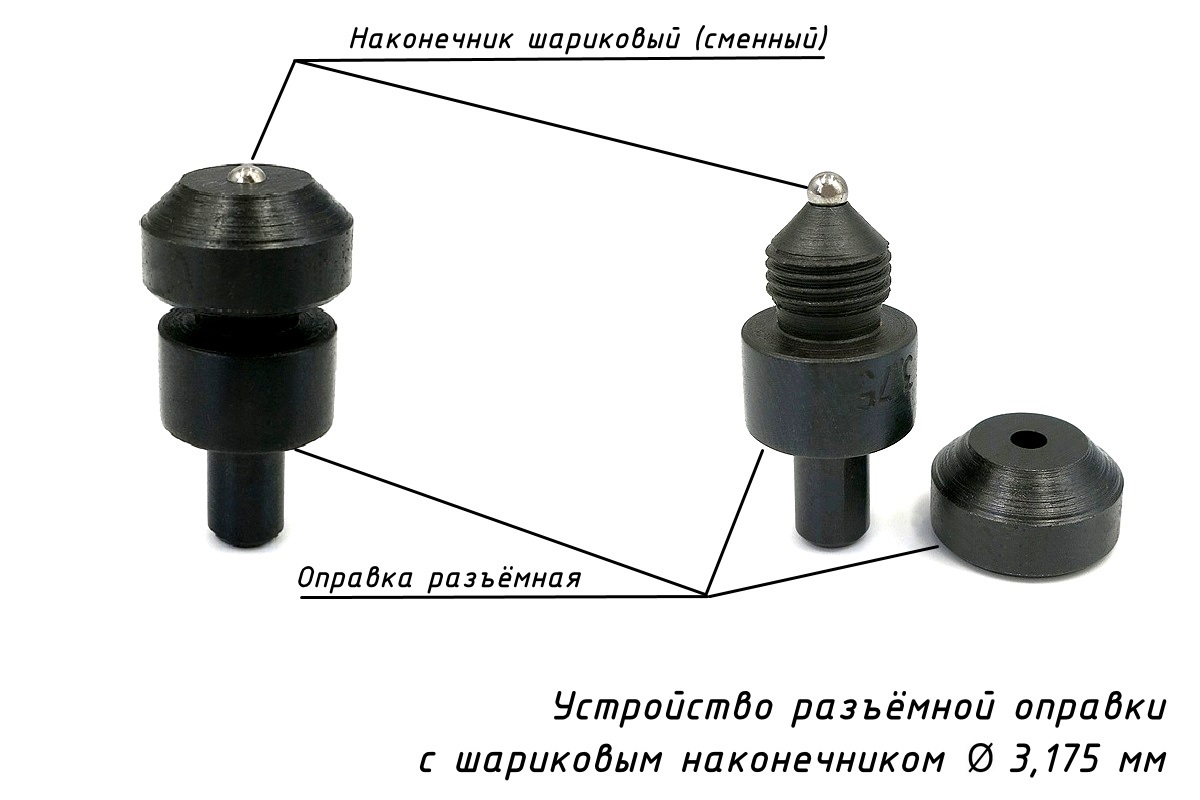 Шариковый наконечник d = 3,175 мм (1/8 дюйма) в оправке (для шкал Роквелла - E, H, K и Супер-Роквелла - 15W, 30W, 45W) |