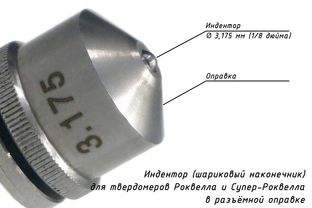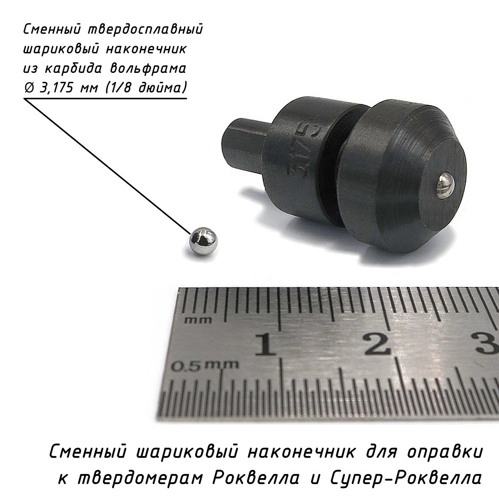 Наконечники шариковые диаметром 3,175 мм к приборам для измерения твёрдости металлов и сплавов по шкалам Роквелла E, H, K по ГОСТ 9013-59 (ИСО 6508-86), а также по шкалам Супер-Роквелла 15W, 30W и 45W.