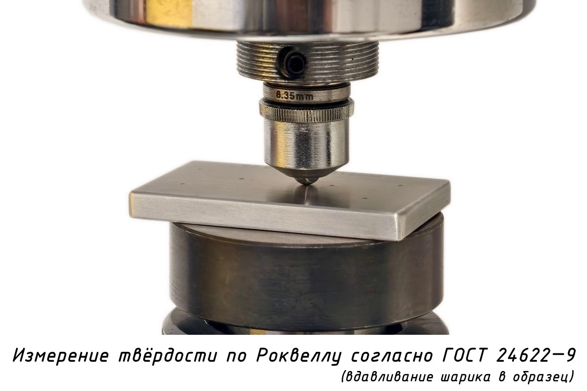 Измерение твёрдости образца металла по шкалам Роквелла и Супер-Роквелла - по глубине отпечатка шарикового наконечника