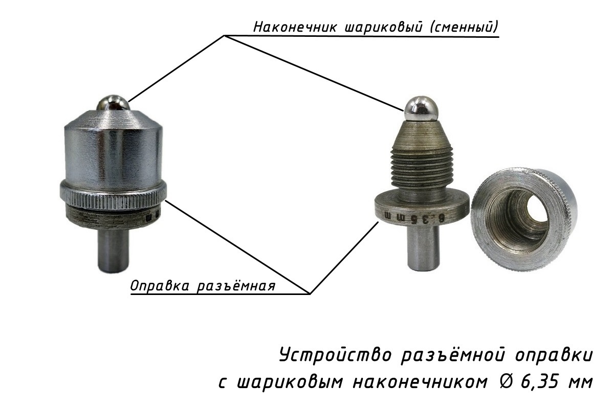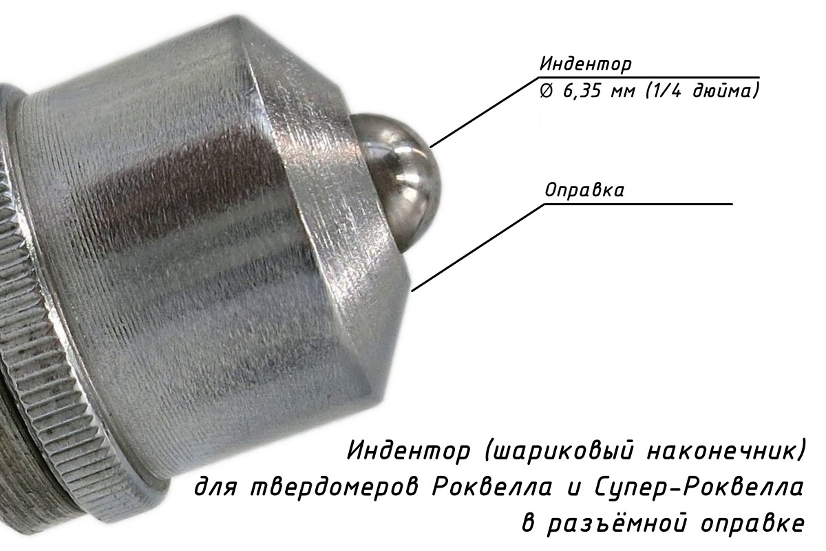 Шариковый наконечник d = 6,35 мм (1/4 дюйма) в оправке (для шкал Роквелла - L, M, P и Супер-Роквелла - 15X, 30X, 45X) |