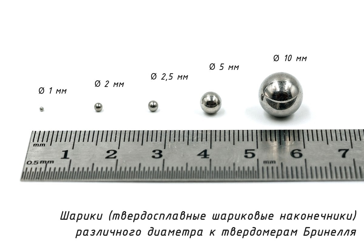 * Примечание: ООО «Восток-7» не поставляет шарики из стали (диаметром 10 мм), ввиду того, что проводить измерения по ВСЕМ диапазонам шкал твёрдости Бринелля позволяют ТОЛЬКО твердосплавные шарики из карбида вольфрама. |