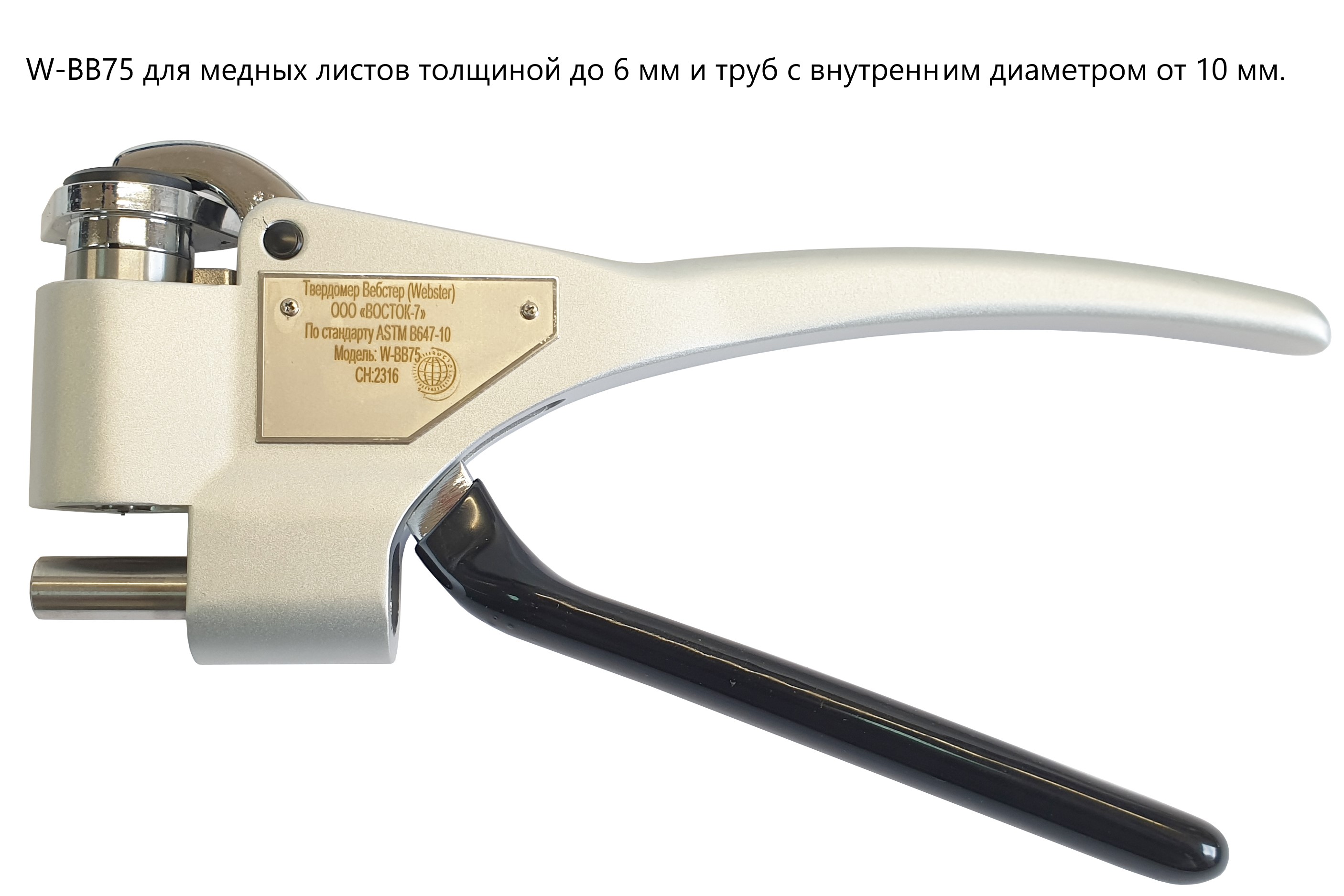 Твердомер Вебстер (Webster) - портативный инструмент для быстрого контроля твёрдости в соответствии со стандартом ASTM B647. Механический индикатор указывает значение твёрдости после сжатия ручек инструмента (аналогично щипцам или пассатижам). <br>
